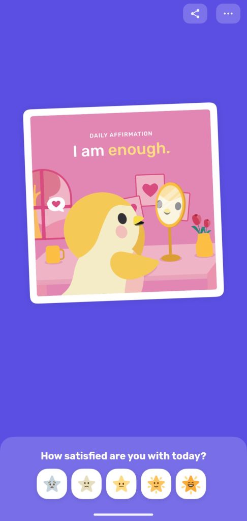 It’s super cool and has allowed me to take responsibility for my mental health from ensuring I say at least one positive thing about myself to making sure I take my daily vitamins. It even offers users the space to reflect and teaches users how to name their emotions. There is a paid version of the app, but I have the free version and have been thoroughly enjoying the benefits all the same. If you’d like to download the app, I recommend giving it a try to see if you like it!